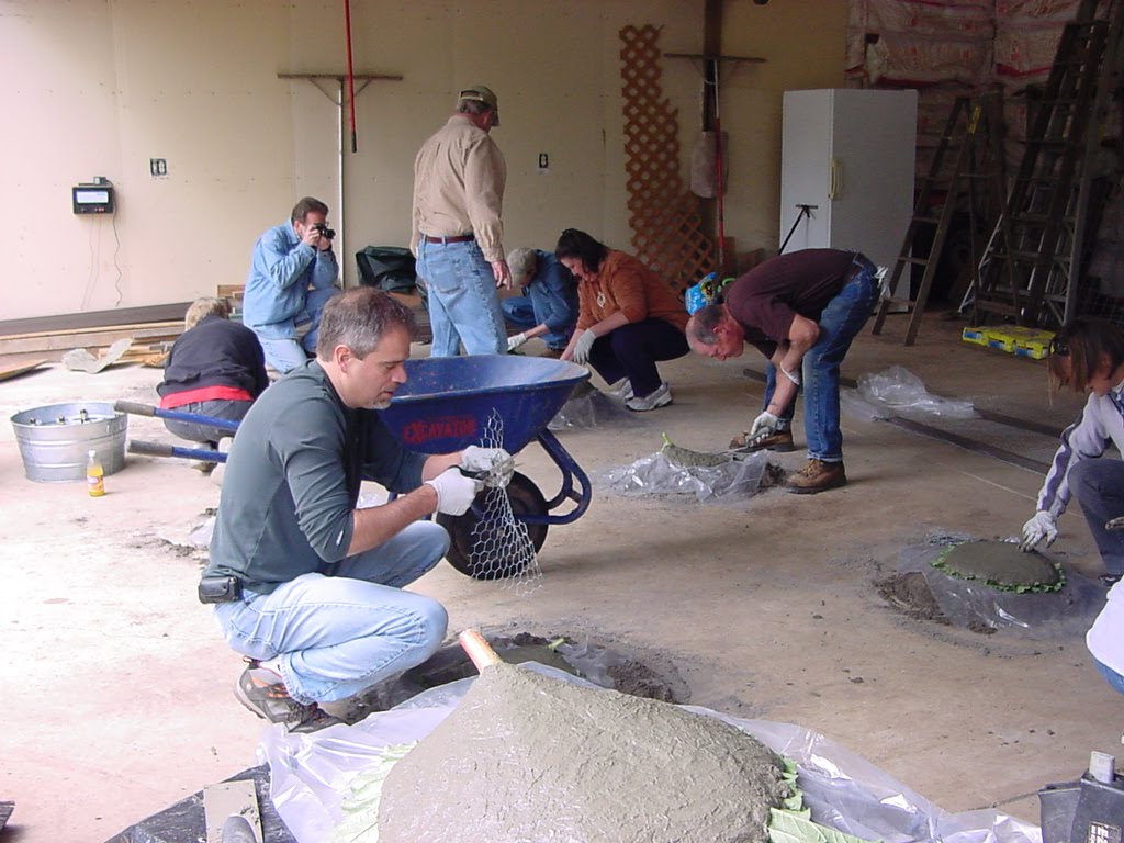 Sand, then a layer of plastic, then the leaf, then the cement-glue mix, then some chicken wire mesh, then some more cement and one more layer of plastic.